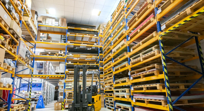 | Racks de paletes | Bom para armazenar muitos itens e fácil de alcançar |
